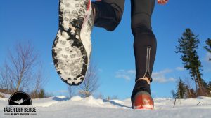Der Herbst verging und der Winter stand vor der Tür. Ich liebe es im Schnee unterwegs zu sein und dem Agravic ging es dabei nicht anders. Durch tieferen Schnee zu pflügen war absolut problemlos aber das darf man auch von einem 150.- € Schuh durchaus erwarten. Was ich aber wirklich klasse fand, war das selbst auf einer festen Schneeschicht der Schuh einen optimalen Grip lieferte und ich so auch bei höherem Tempo bergab sicher war nicht wegzurutschen.