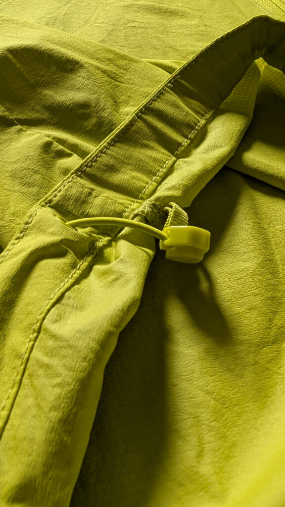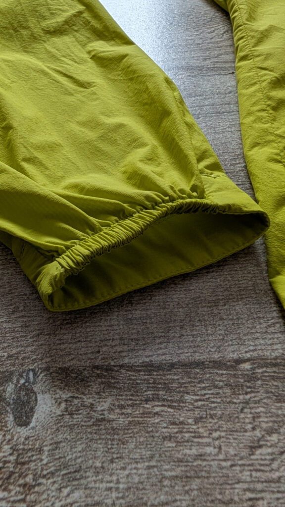 Beim genaueren Betrachten fallen dann aber auch die teilintegrierten, elastischen Ärmelbündchen an den Handgeleken auf, die zugegeben einfach genial ist. Dazu gesellt sich auf der auf der Rückseite ein Gummizug zur Anpassung des Saums.