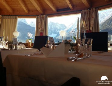 Nach langem hin und her hatte ich mich entschieden. Das Berghotel in Sexten sollte es sein. Es ist schön gelegen und für unsere Tour der perfekte Startplatz um zu den Drei Zinnen aufzubrechen. Zudem liegt es direkt am Skigebiet (was wir ja leider nicht wirklich nutzen konnten) Im Inneren strahlt das Hotel von allen Wänden regelrechtes Bergsteigerfeeling aus. Ein Bild reiht sich an das andere, man könnte einige Minuten allein im Treppenhaus verharren und die Geschichte um einen der Erstbesteiger der Drei Zinnen Franz Innerkofler durchzulesen. Das Hotel ist sehr geschmackvoll eingerichtet. Der Restaurantbereich kann sich mit dem freien Blick auf das Fischleintal und den dort stehenden Bergen wie etwa die Rotwandköpfe, Einser und Altenstein absolut sehen lassen.